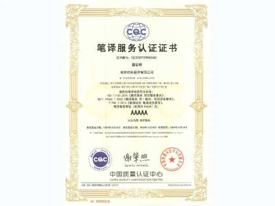 - ISO 9001:2015 翻譯服務(wù)質(zhì)量認證